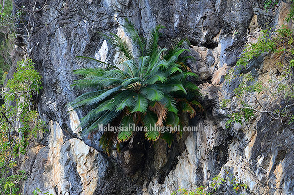 | These Cycas plants grow on the limestone cliffs. |